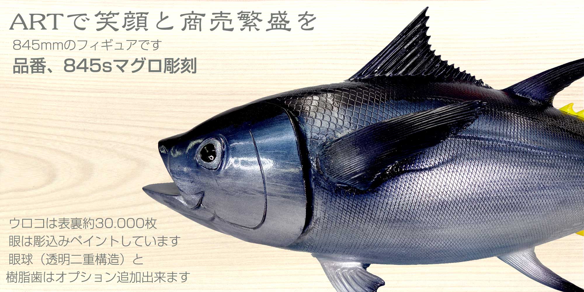 マグロ彫刻-施工例、マグロ彫刻13作品画像一覧、マグロ彫刻・13種類販売中、模型ディスプレイ施工例845㎜マグロ彫刻演出は貴方のお店に笑顔と幸せをお届けします 投稿者: kt、2025/08/312025/08/31