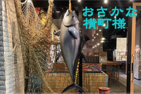 弊社で一番大きな1m90cmマグロオブジェ作品が酒と魚屋とマグロ魚吉段平様で祝開店お披露目です広島市南区段原。 …