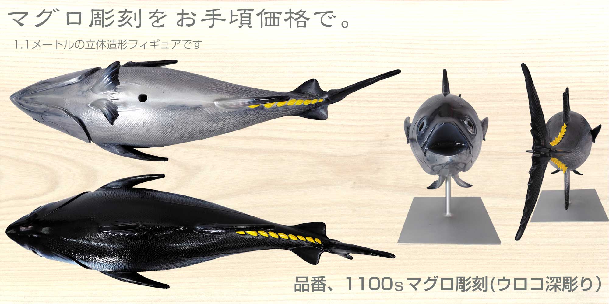 下記作品は特注改造キハダマグロ彫刻です(12作品全種類改造可能です)